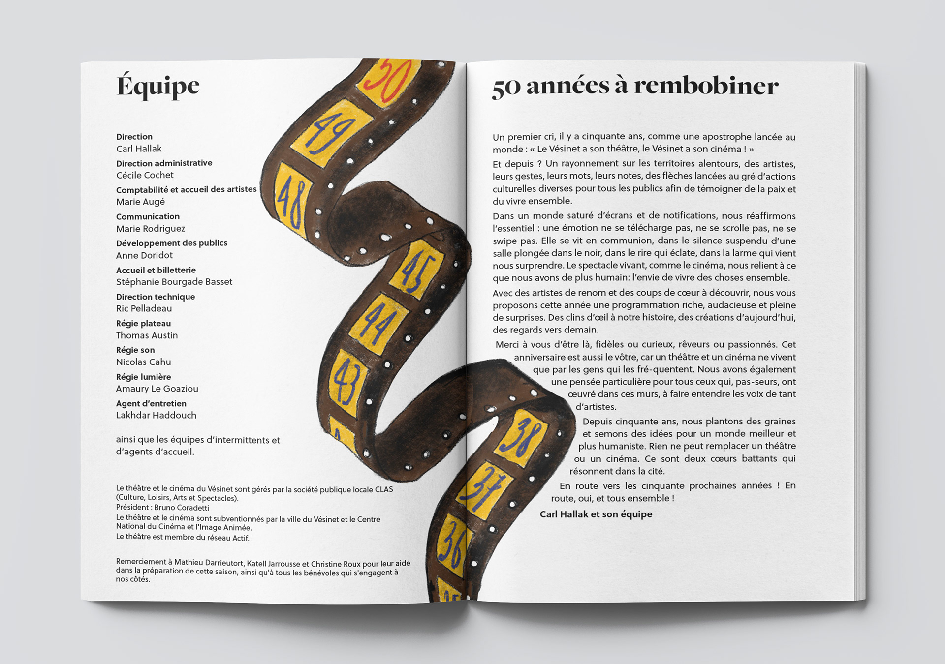 Brochure de saison pour le Théâtre du Vésinet. Le projet visait à créer quelque chose de ludique et coloré. Illustrations et mise en page : Giulia Barbini.