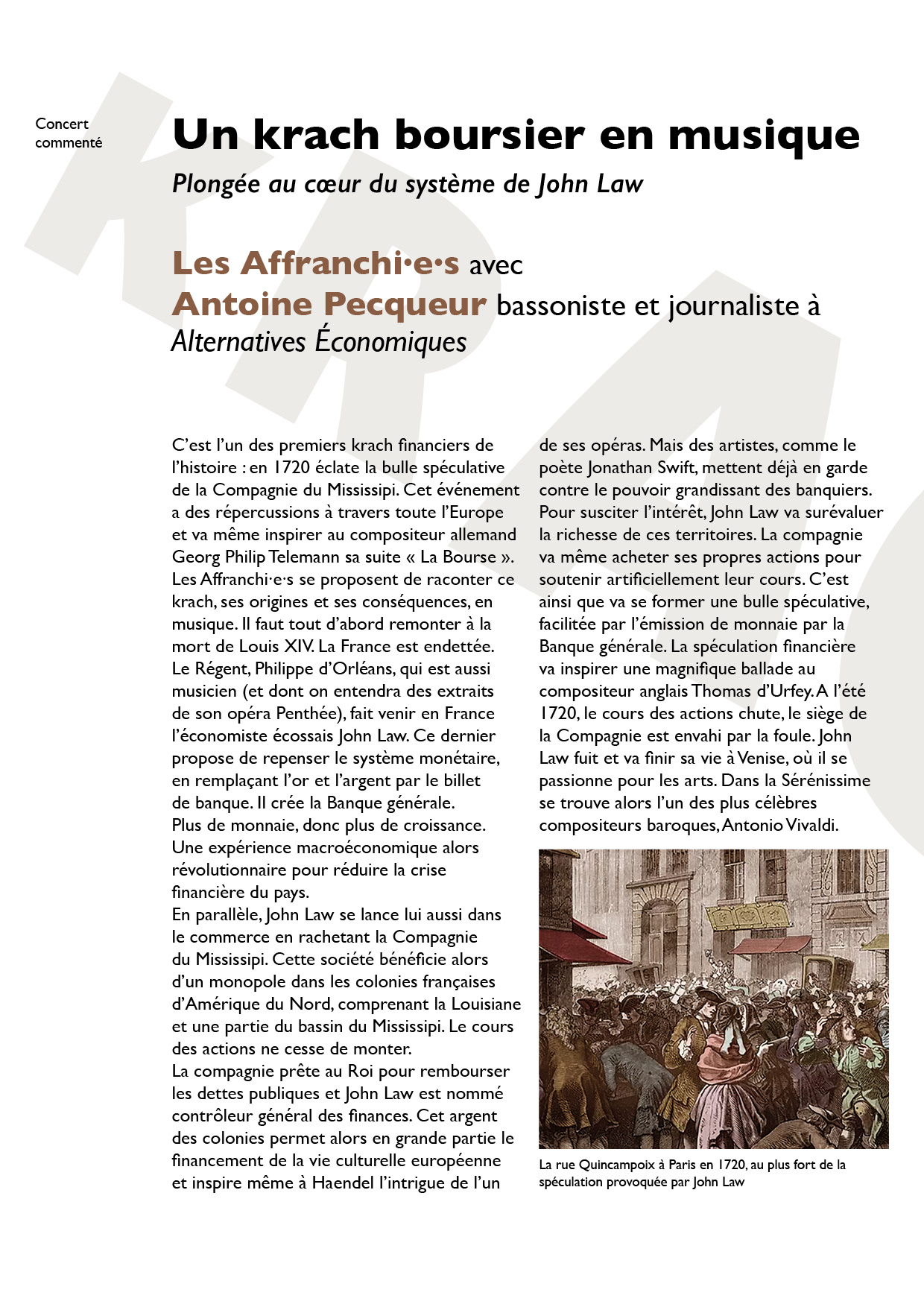 Presentation of a baroque concert inspired by the first stock market crash in history.
